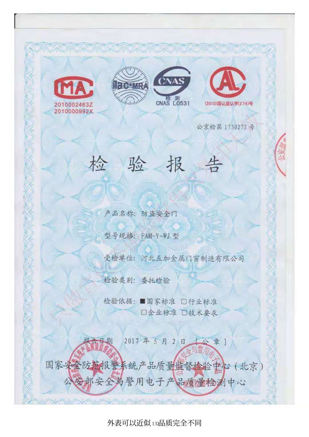 防盜安全門檢驗報告系列
