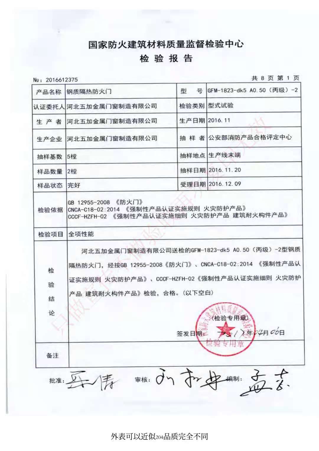鋼制防火門檢驗(yàn)報(bào)告系列
