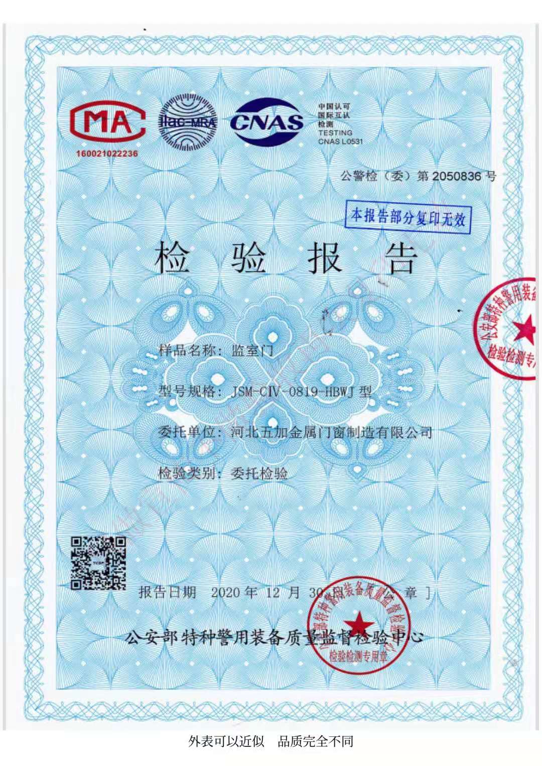 監(jiān)室門檢驗報告系列