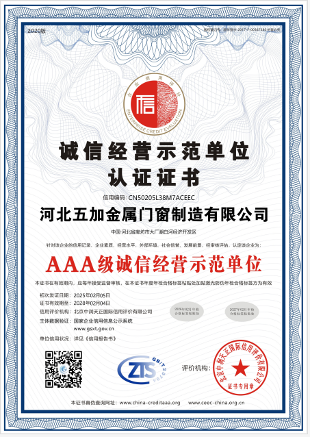誠信經營示范單位AAA證書
