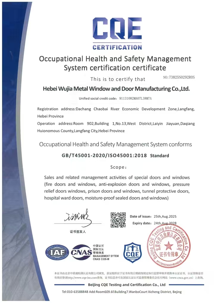 職業健康安全管理體系認證證書2025年-2028年英文版